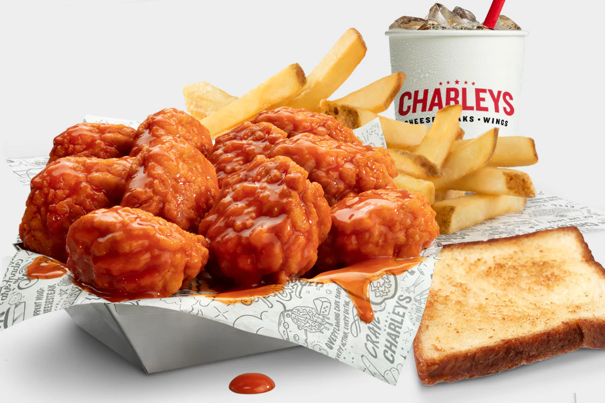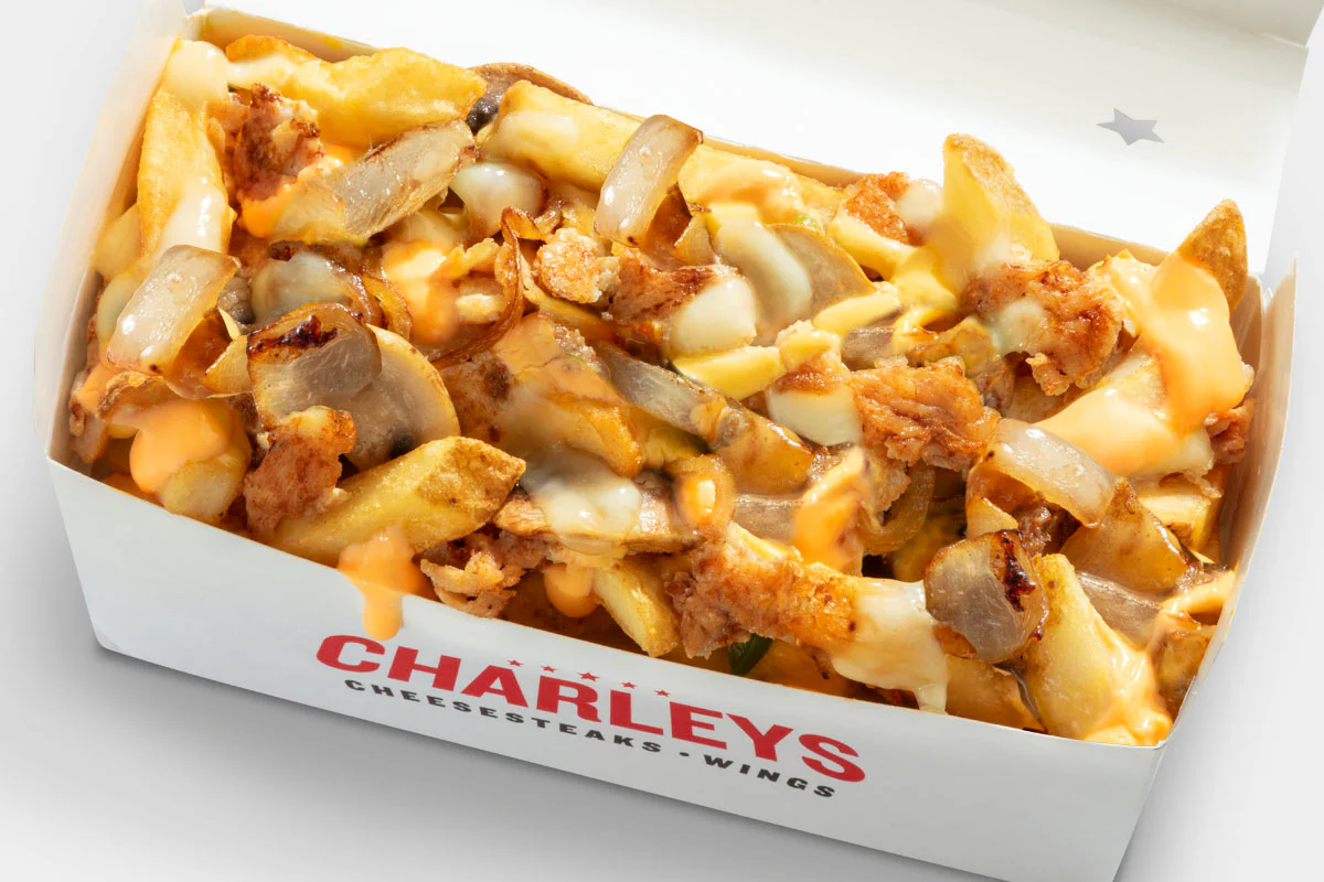 Charleys famous fries topped with all white meat chicken, sauteed onions, melted American cheese and a drizzle of Charleys signature sauce.