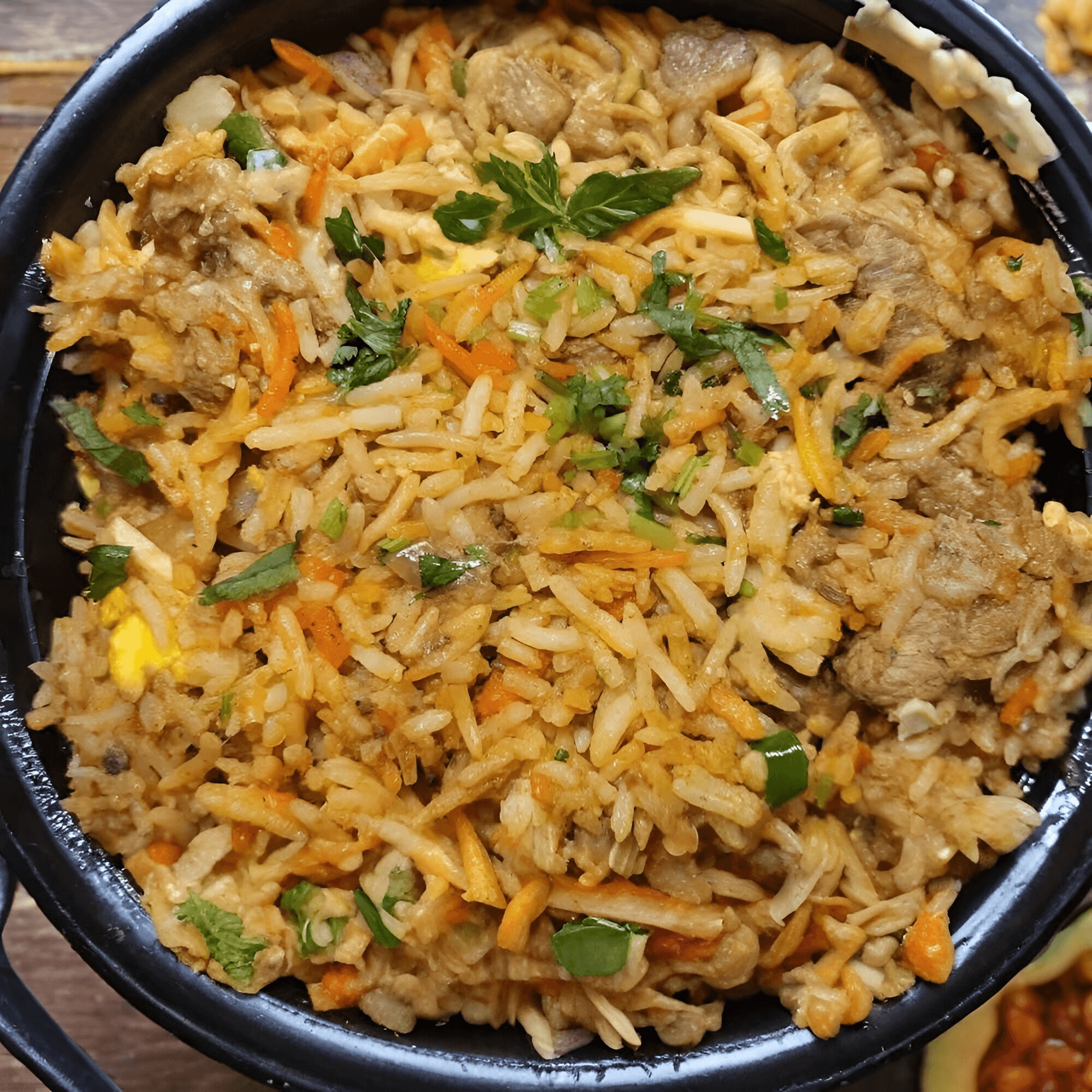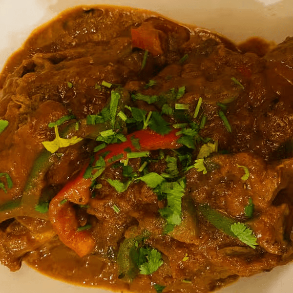 Gluten-free. Meat stir-fried with bell peppers, onions, and a blend of bold spices, finished in a traditional wok