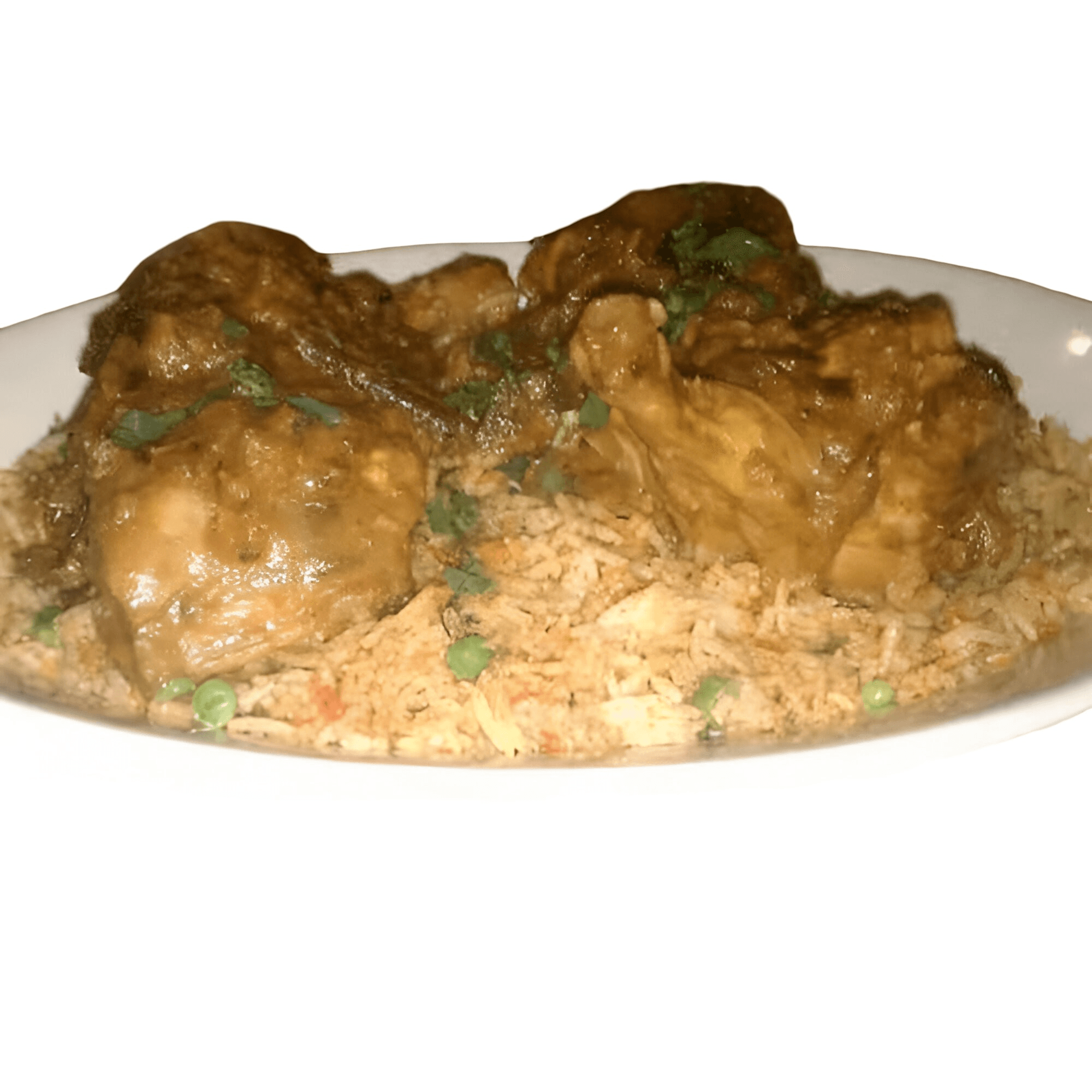 Gluten-free, contains nuts. Saffron basmati rice, nuts & raisins mixed with lamb, beef, chicken & vegetables flavored with exotic seasonings