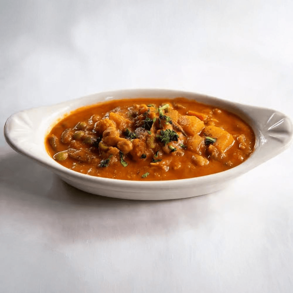 Gluten-free. Perfect combination of fresh garden vegetables and moist tender lamb in Indian herbs and spices