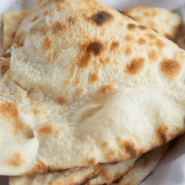 Vegetarian. Soft and fluffy leavened bread brushed with melted butter, a perfect companion to any curry