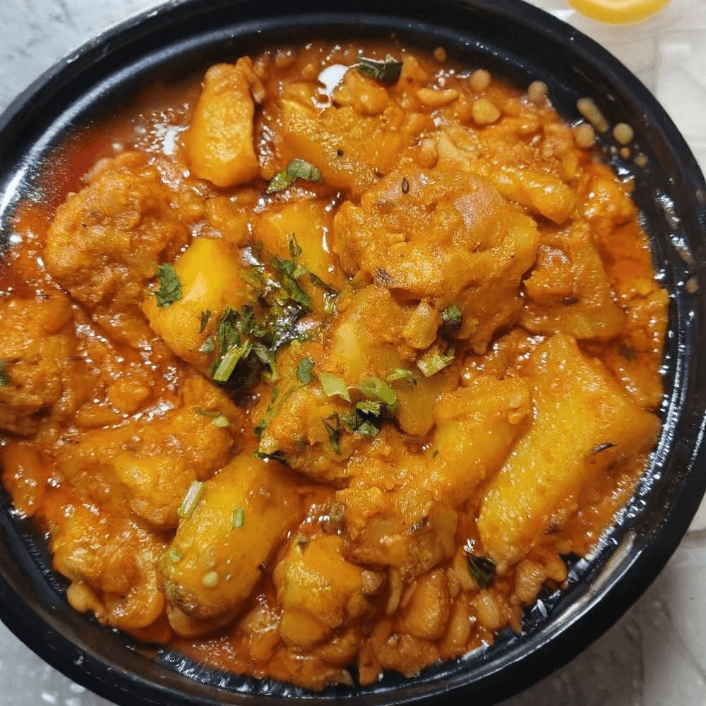 Crispy fries smothered in a chicken masala sauce, topped with tender chicken. A flavorful twist on a classic snack