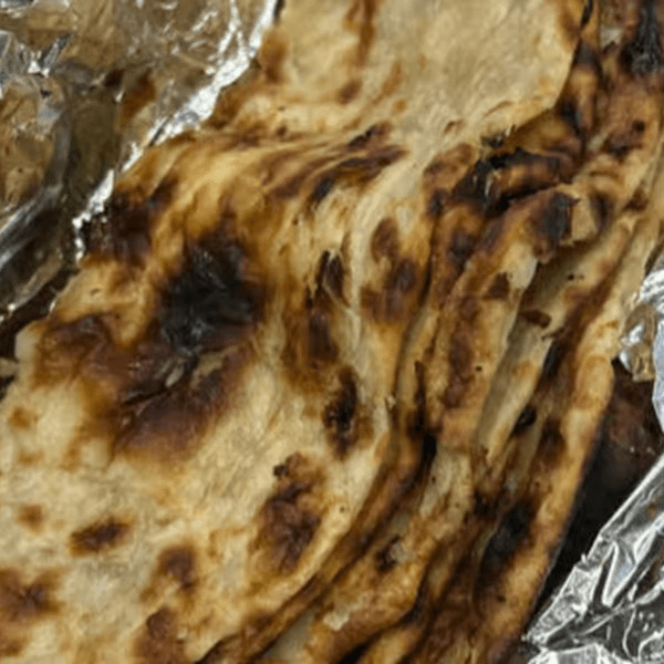 Vegetarian, vegan. Flaky whole wheat bread infused with fresh mint, adding a refreshing twist to your meal