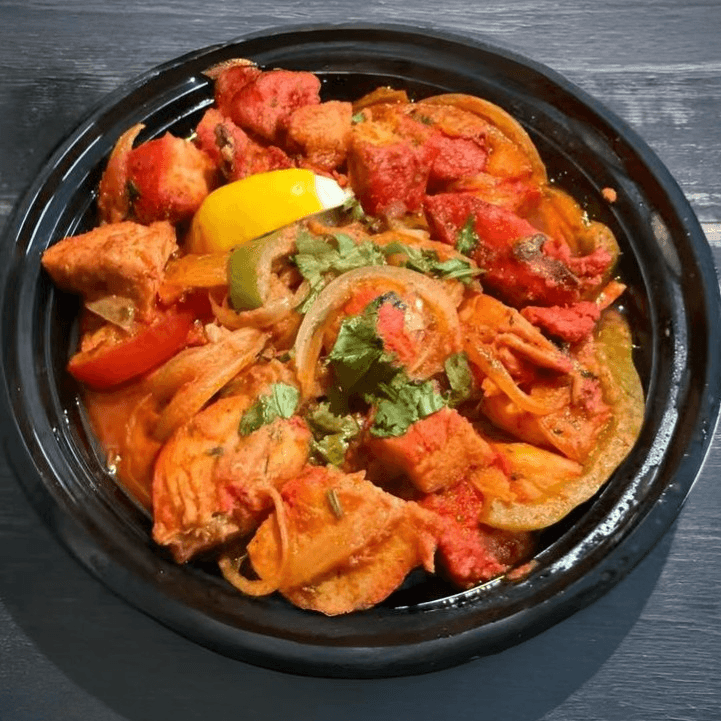 Gluten-free. A selection of marinated tandoori chicken, chicken tikka and tandoori shrimp grilled to perfection and served on a sizzling hot plate