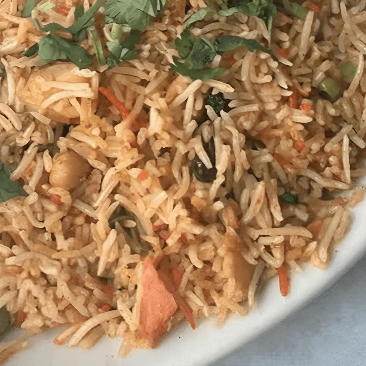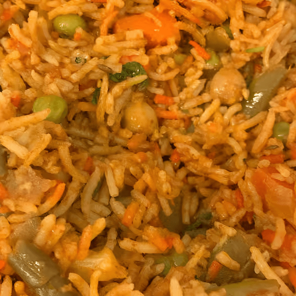 Gluten-free, vegetarian, vegan. Fragrant basmati rice cooked with sweet peas, caramelized onions, and a medley of spices