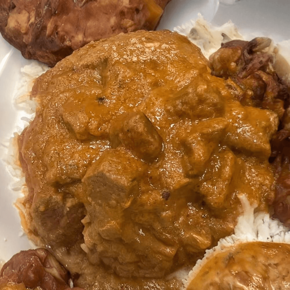 Gluten-free. Tender meat in a rich, spicy sauce with cardamom, cinnamon, and Kashmiri chilies. A classic Indian dish with a deep, velvety flavor