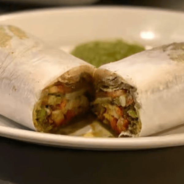 Tandoori Chicken Tikka mixed with lettuce, onions and tomatoes, and is rolled in naan bread. Comes with a choice of soup: Dal or Tomato