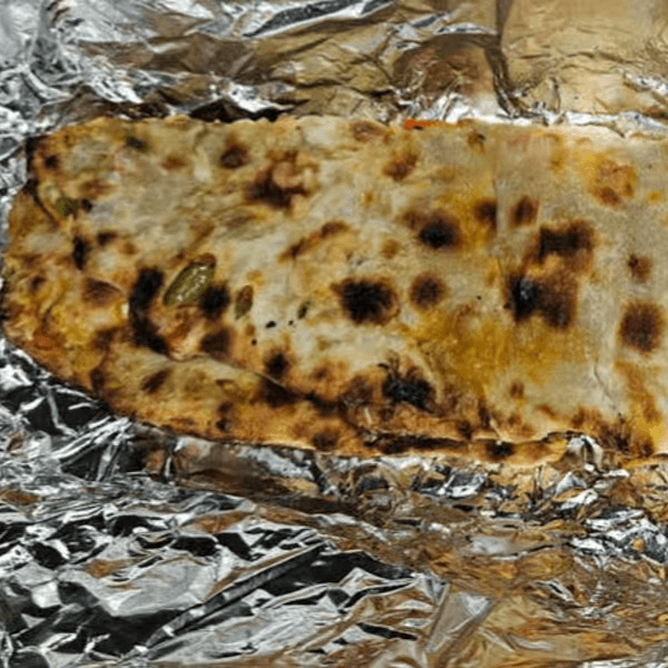 Vegetarian. Tandoori-style Indian bread stuffed with homemade cheese