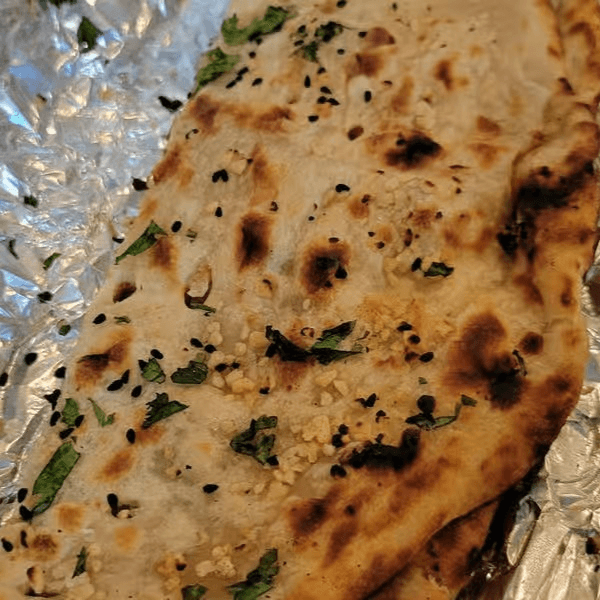 Vegetarian, vegan. Traditional naan generously layered with your choice of minced onion or garlic