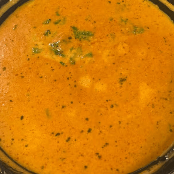 Gluten-free, vegetarian, vegan. Grilled paneer cubes simmered in a spiced tomato-based gravy, balanced with cream for a smooth finish