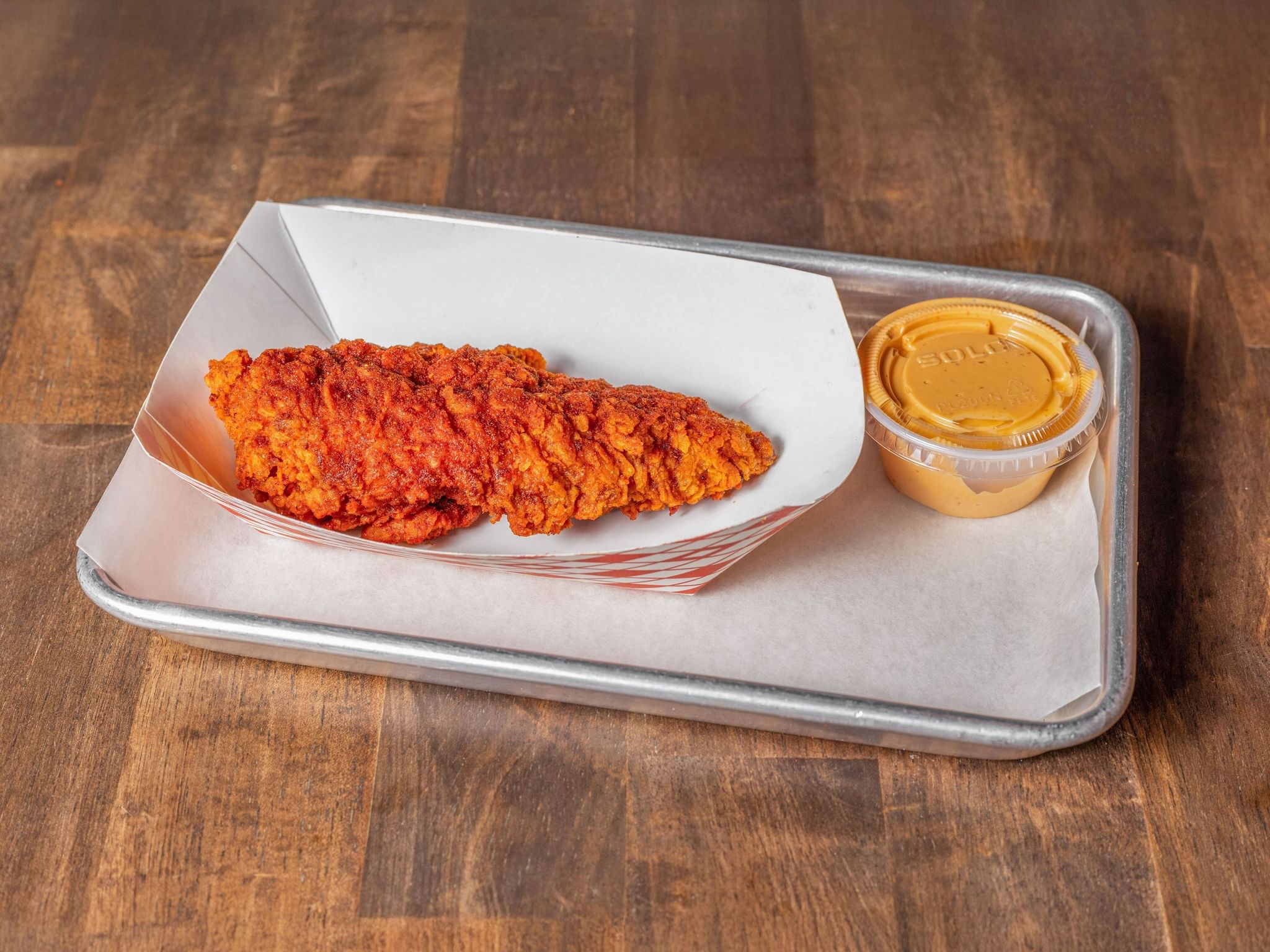 Savour our hot chicken tenders combo paired with two crispy tenders, golden fries, and soft white bread, a perfect harmony of flavors