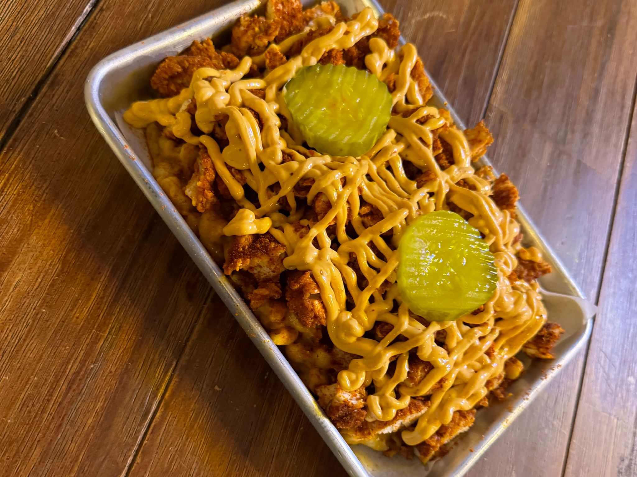 Indulge in a flavor explosion with our flamin loaded fries, topped with savory tenders and our homemade flamin sauce for the ultimate comfort food experience