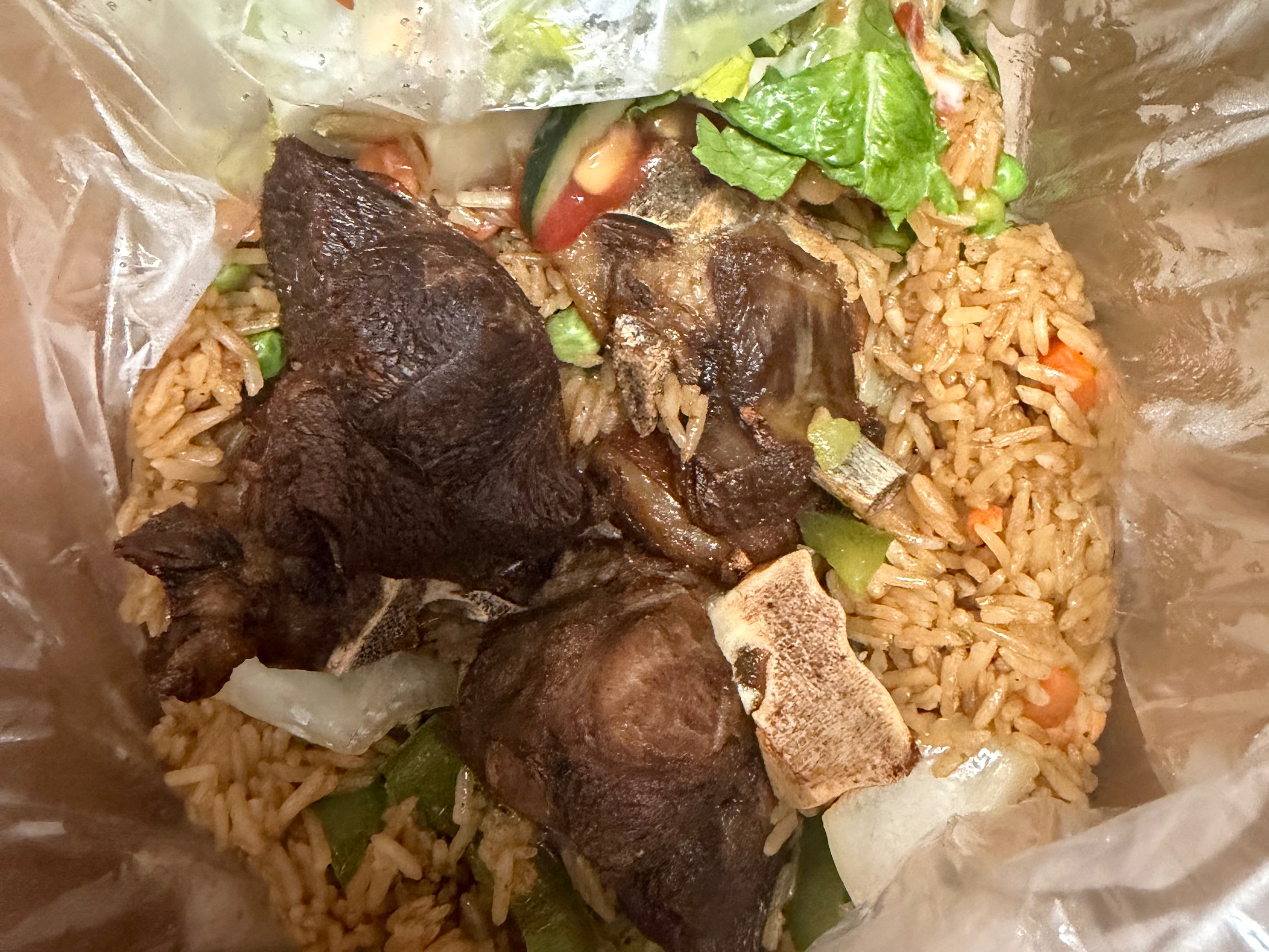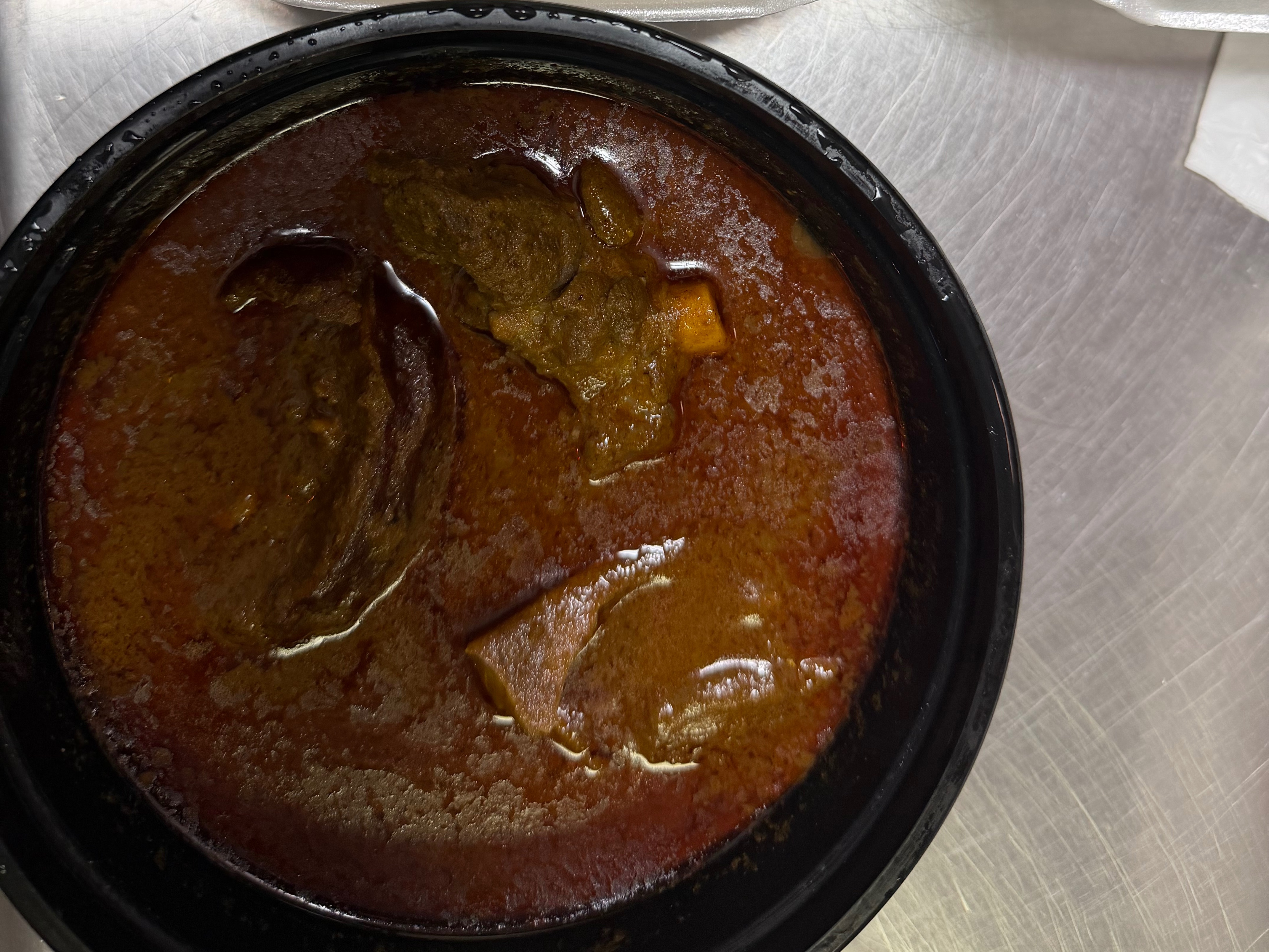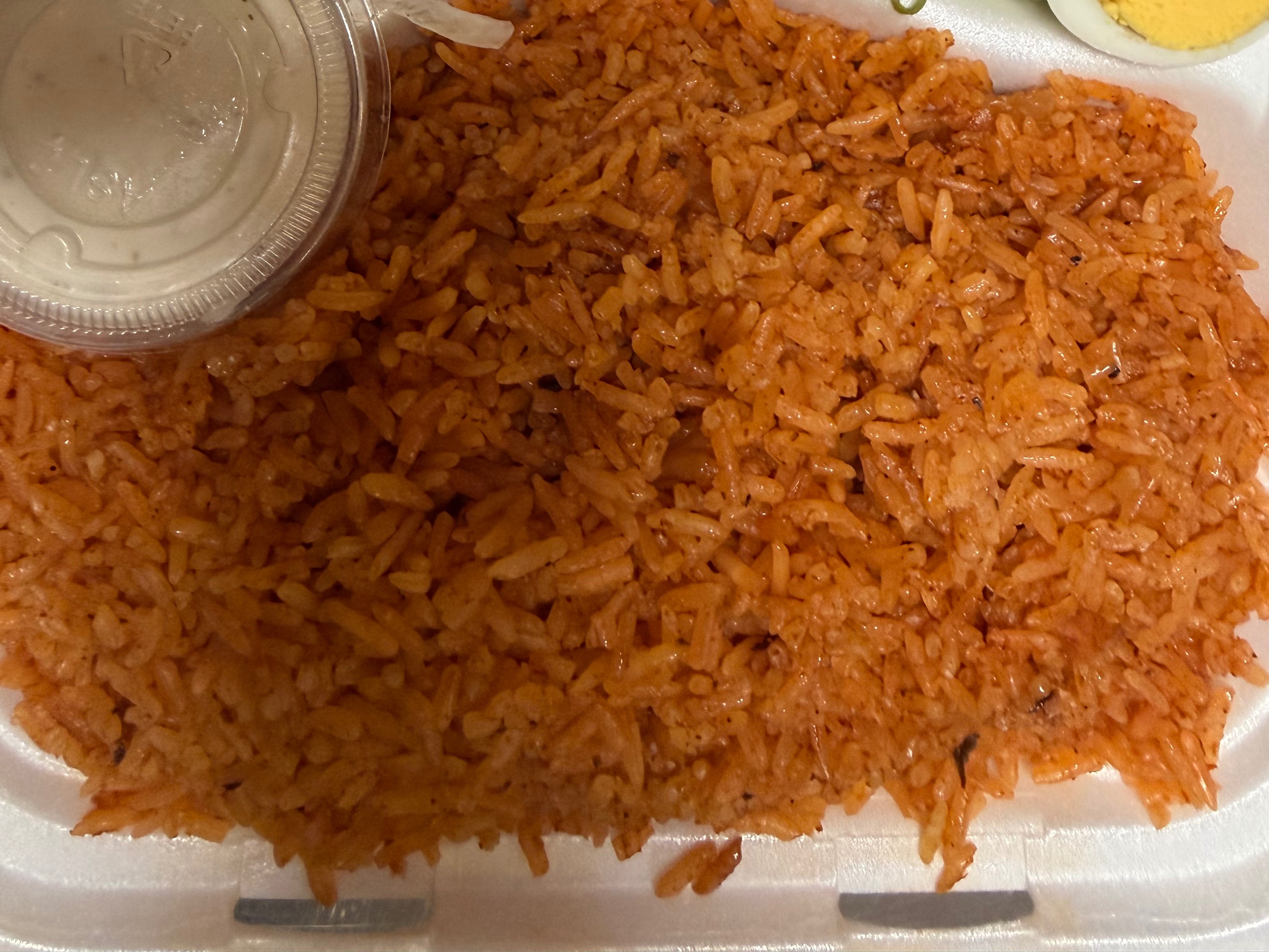 Rice cooked in oil, onions, and often salted beef (Tolo beef). It is characterized by its golden, glossy appearance, rich flavor from the beef, and the "kanzo" (crispy, scorched rice) at the bottom of the pot. Only available Saturday and Sunday