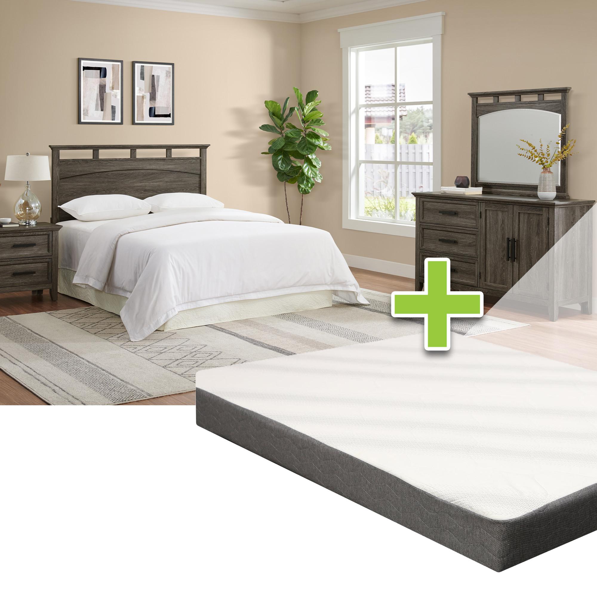 Link: Queen Matias Bed w/8" Firm Tight Top Foam Mattress & Dresser, Mirror, Nightstand
