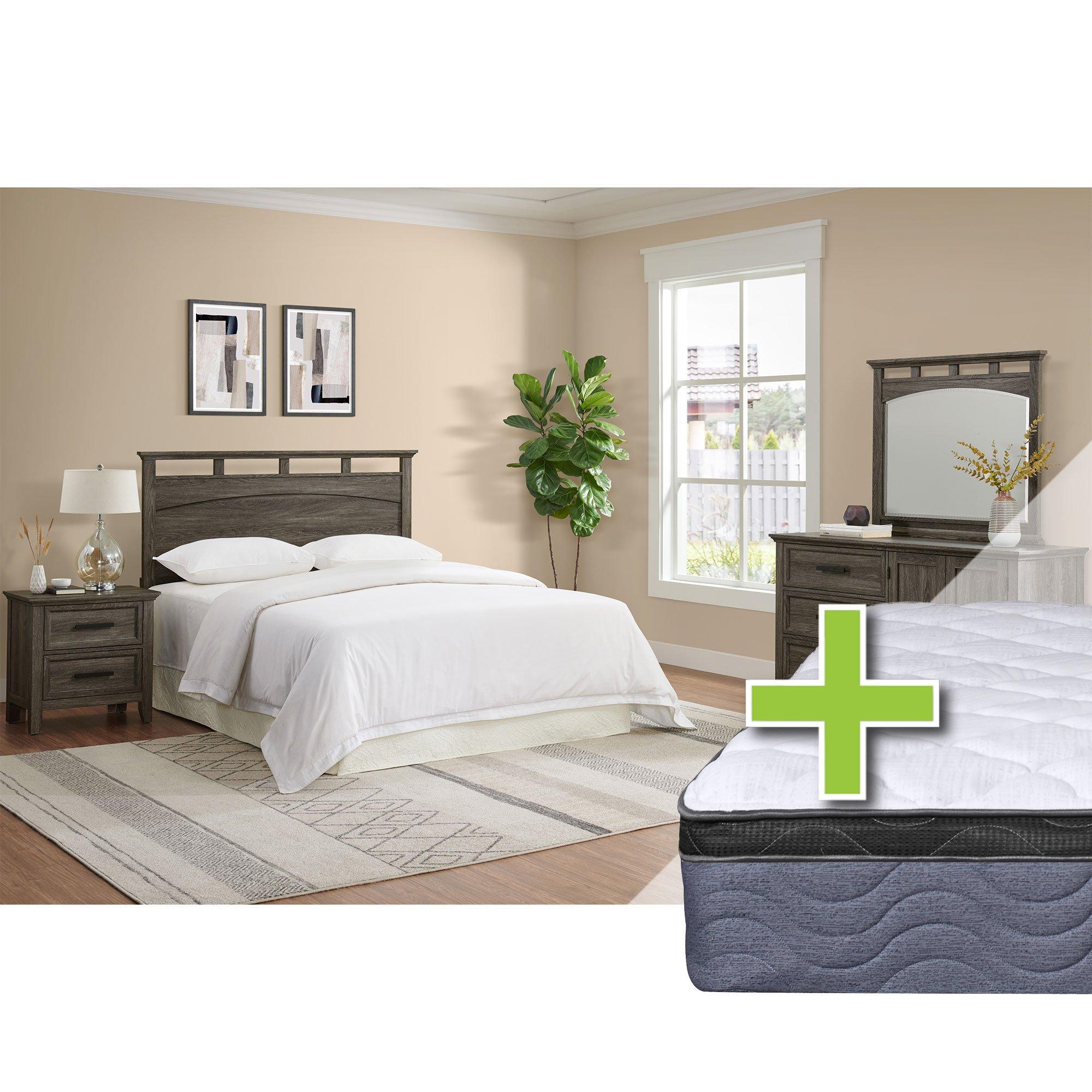 Link: Queen Matias Bed w/9.5" Tight Top Extra Firm Mattress & Dresser, Mirror, Nightstand