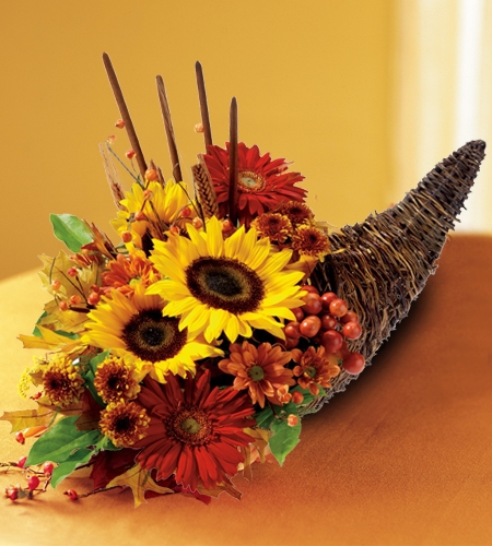 Celebrate the fullness of life with this rustic cornucopia of sunflowers, chrysanthemums, gerbera daisies and lush fall foliage. DELIVERY: Every order is "Hand Delivered" direct to the recipient. These items will be delivered by us locally, or by a hand selected florist within our team.