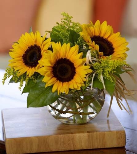A bowl filled to the brim with sunflowers DELIVERY: Every order is "Hand Delivered" direct to the recipient. These items will be delivered by us locally, or by a hand selected florist within our team.