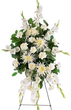 This traditional spray, filled with white carnations, chrysanthemums and gladoli, makes the promise that love is eternal.