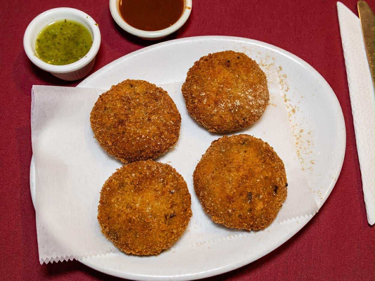 Mixture of potatoes, homemade Indian cottage cheese, onions and fresh cilantro make into patties, then deep fired.