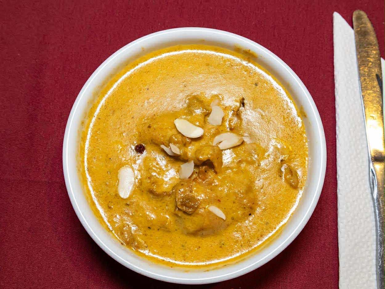South Indian dish made of meat of your choice, gently spiced sauce cooked with butter, ground almond, cream, onions, ginger, garlic and spices.