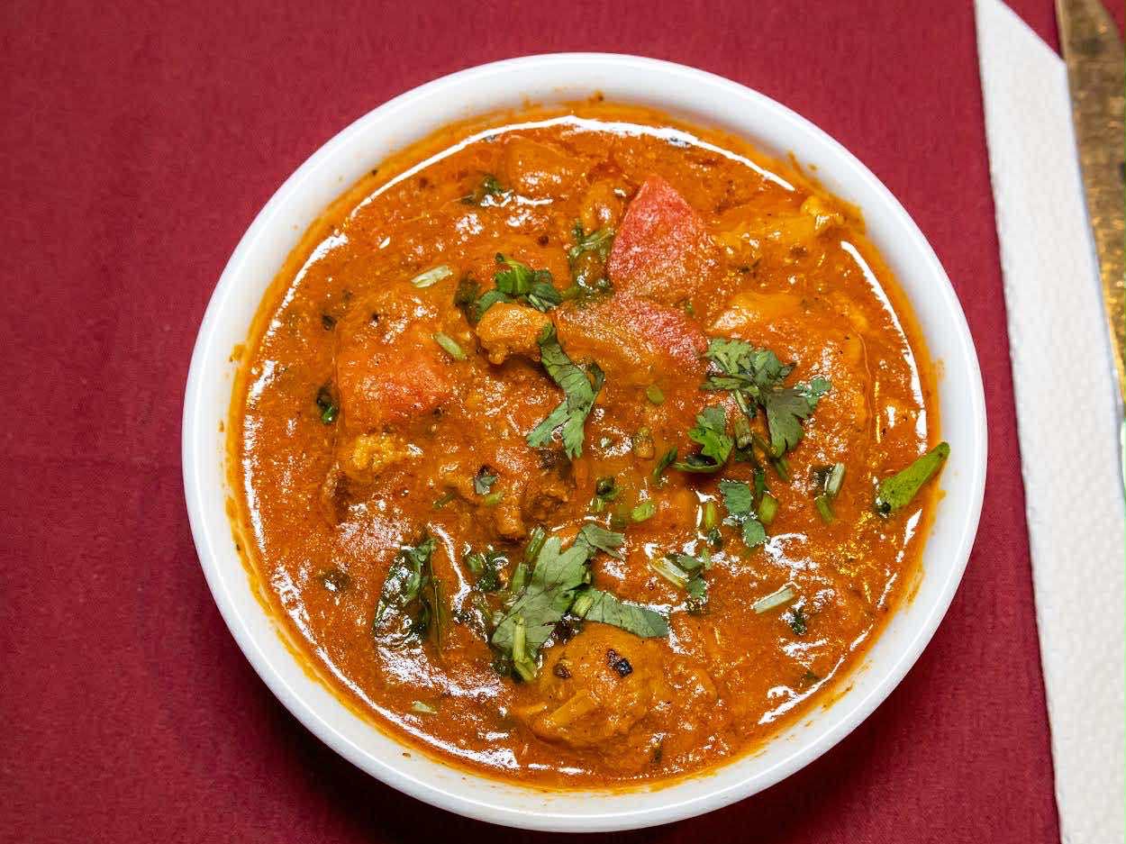 Tender meat of your choice cooked with spicy pickling tempering ingredients, fresh tomato, and coriander.