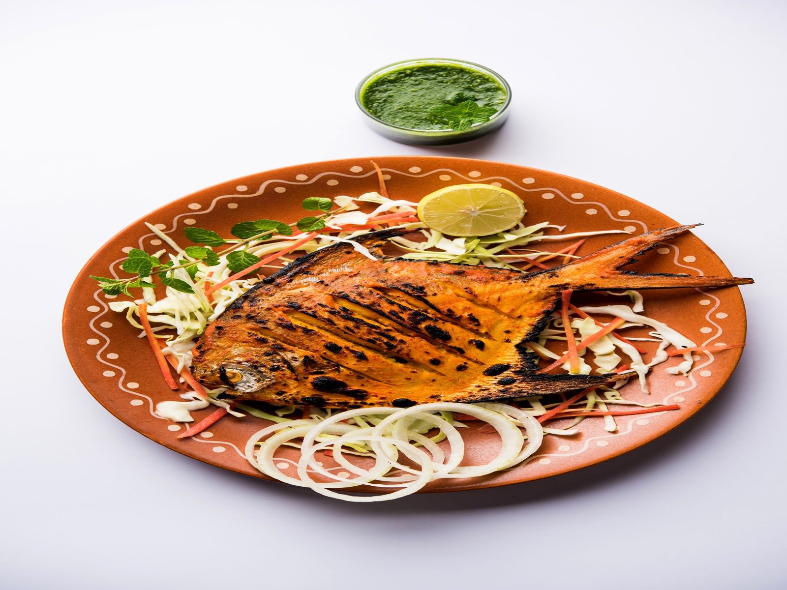 Fish marinated in herbs and spices and broiled in tandoori oven.
