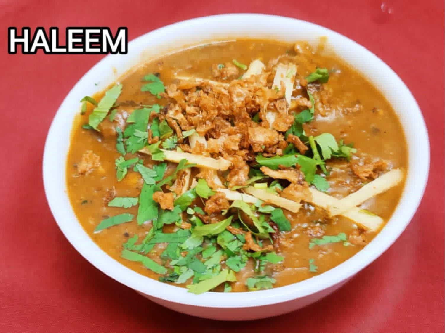 Haleem is cooked of bone-in goat meat, wheat, lentils, green gram, chickpea, green-pea, black gram, aromatic rice with special spices