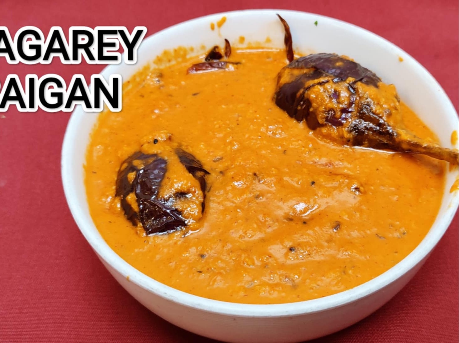 Baby eggplant cooked with peanuts, coconut, sesame seeds, red chilies & spices.