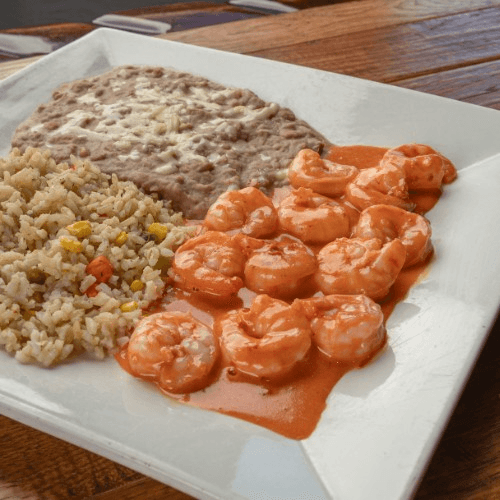 Grilled shrimp, sirloin steak, grilled chicken, and Mexican sausage cooked with onion, mushrooms, bell peppers, tomatoes, zucchini, and a special red sauce with melted Monterrey cheese. Served with two sides, lettuce, guacamole, sour cream, tomato, pico de gallo, and three flour tortillas