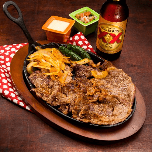 Grilled fresh mushrooms, bell peppers, tomatoes, and onions. Served with guacamole salad, sour cream, pico de gallo and tortillas